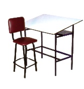 Mesa kidney : Diseño especial de altura fija med. fr= 180 fo=120 a=50 cm en melamina en colores, estructura en tubular cuadrado de2X1 cal. 18 y1 1/4″ cal. 18 para las patas, acabado en pintura micropulverizado, color negro.