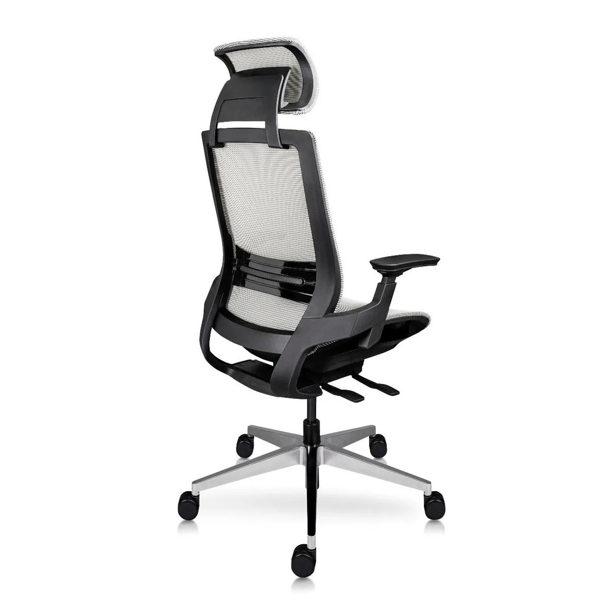 * Respaldo con tapizado en malla color gris de alta resistencia.